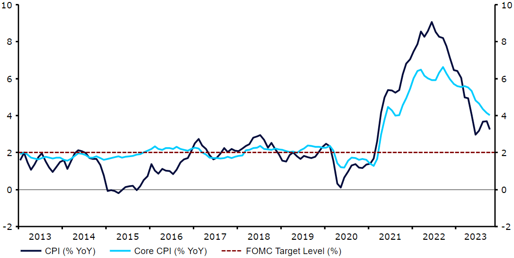 Graf 3: Míra inflace v USA (2013-2023)