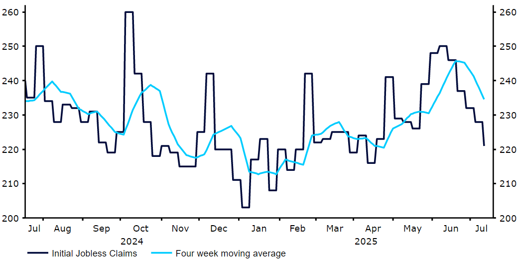 Nyní, když je otázka vedení Fedu prozatím odložena, by se pozornost měla přesunout k nepředvídatelným zprávám o clech, protože datum 1. srpna se nezadržitelně blíží. Zdá se, že čtvrtek bude obzvlášť volatilním dnem. Kromě červencového zasedání ECB budou zveřejněny indexy PMI zemí G3. Množství údajů druhého řádu nám také pomůže potvrdit nebo vyvrátit ekonomické narativy, které se vyvíjejí: V tomto případě se bude jednat o další vývoj v USA, který by měl potvrdit, že USA jsou odolné, aktivita v eurozóně je stabilní, ale pomalá, a ve Spojeném království dochází ke znepokojivému zpomalení.